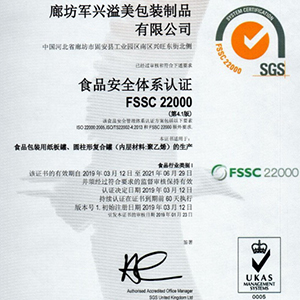 在同行业中,军兴溢美率先通过FSSC22000食品安全体系认证。